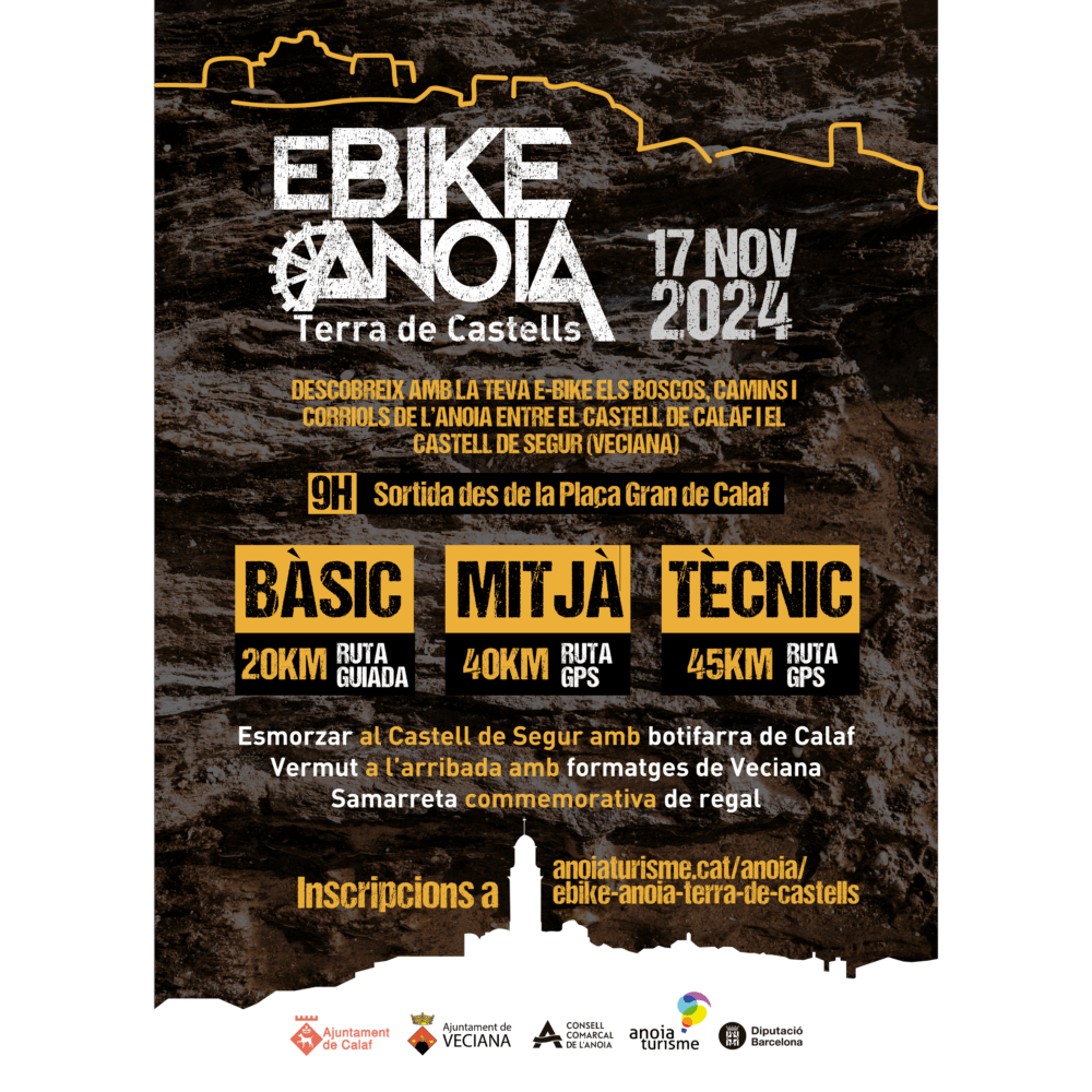 Descobreix amb la teva eBike els boscos, camins i corriols de l’Anoia entre el Castell de Calaf i el Castell de Segur (Veciana).