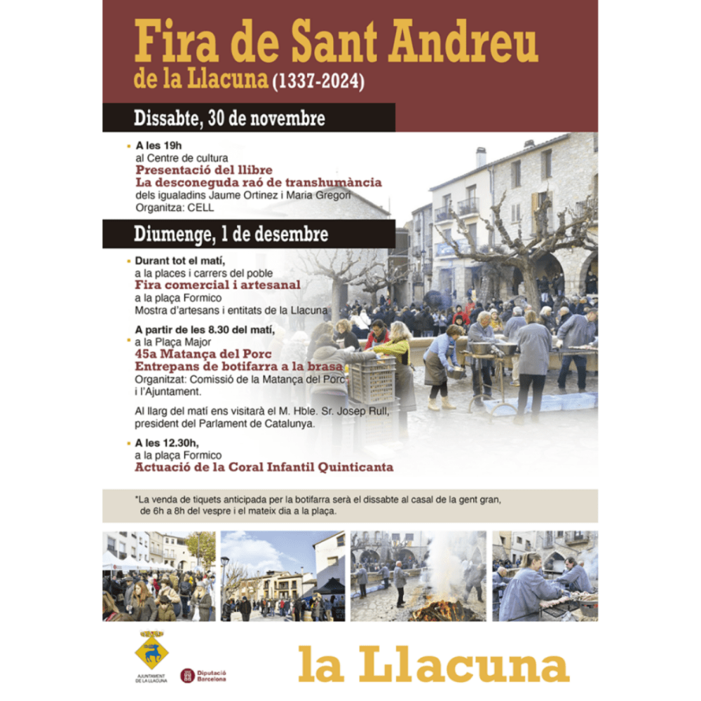 El dia abans però, la mostra ja escalfa motors. Dissabte, 19 d’octubre a les 18.30h a la plaça Major s’ha programat un tast de vins d’altura de la Llacuna i productes locals. L’activitat anirà acompanyada de música en directe de la mà d’Albeta Franklin. Seguidament a l’església de Santa Maria de La Llacuna tindrà lloc l’espectacle de percussió en diàleg amb una peça audiovisual d’artesania: BLANDO. Una fusió única entre la percussió i l’artesania audiovisual.