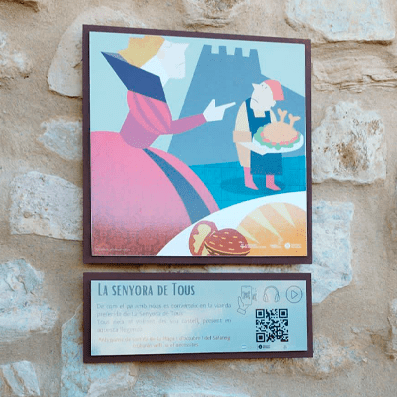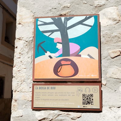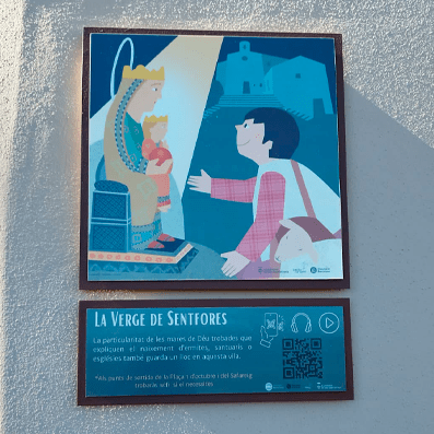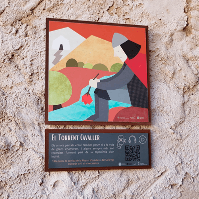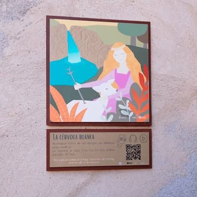 Passeja pel poble i busca les il·lustracions de cada llegenda, estan acompanyades d’un codi Qr que podràs escanejar amb el dispositiu mòbil i et portarà a escoltar aquella llegenda.