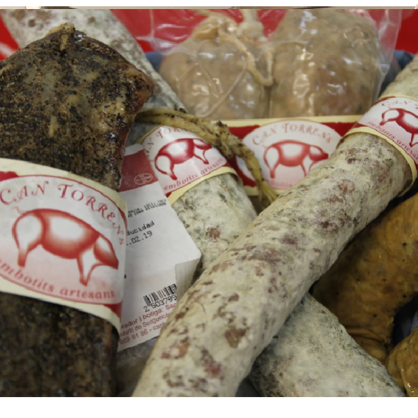 La matèria primera és de proximitat, perquè com explica Torrens els porcs es crien “en granges que estan a uns 15 quilòmetres d’aquí”. Miquel Torrens recorda quan als seus inicis, el que avui és l’obrador era també granja.